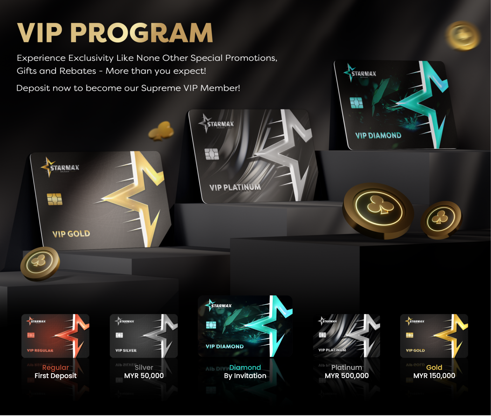 | Min. Deposit Tier Upgrade | - | 50,000 | 150,000 | 500,000 | BY INVITATION | ||||||